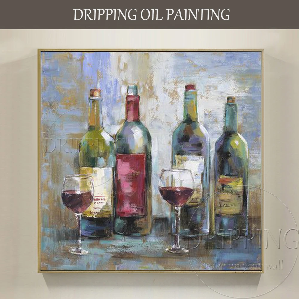 Professional Artist Hand Painted High Quality Wine Bottle Oil Painting On Canvas Abstract Wine Oil Painting For Hotel Decoration